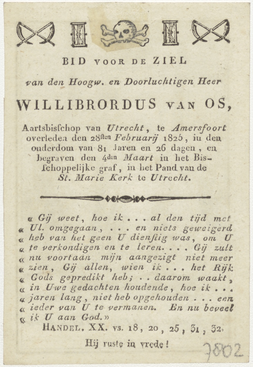 Maria met Anna en Joachim bij de poort opdracht van Maria(?) (Frans), kz. Religieus; bid voor ziel Willibrordus Oss (+1825) Utrecht