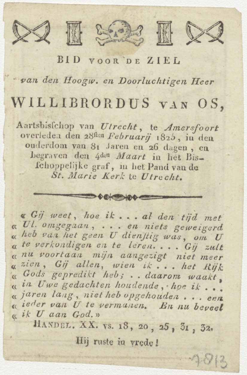 H. Drie-eenheid (Frans), kz. Religieus; bid voor ziel Willibrordus Oss (+1825) Utrecht