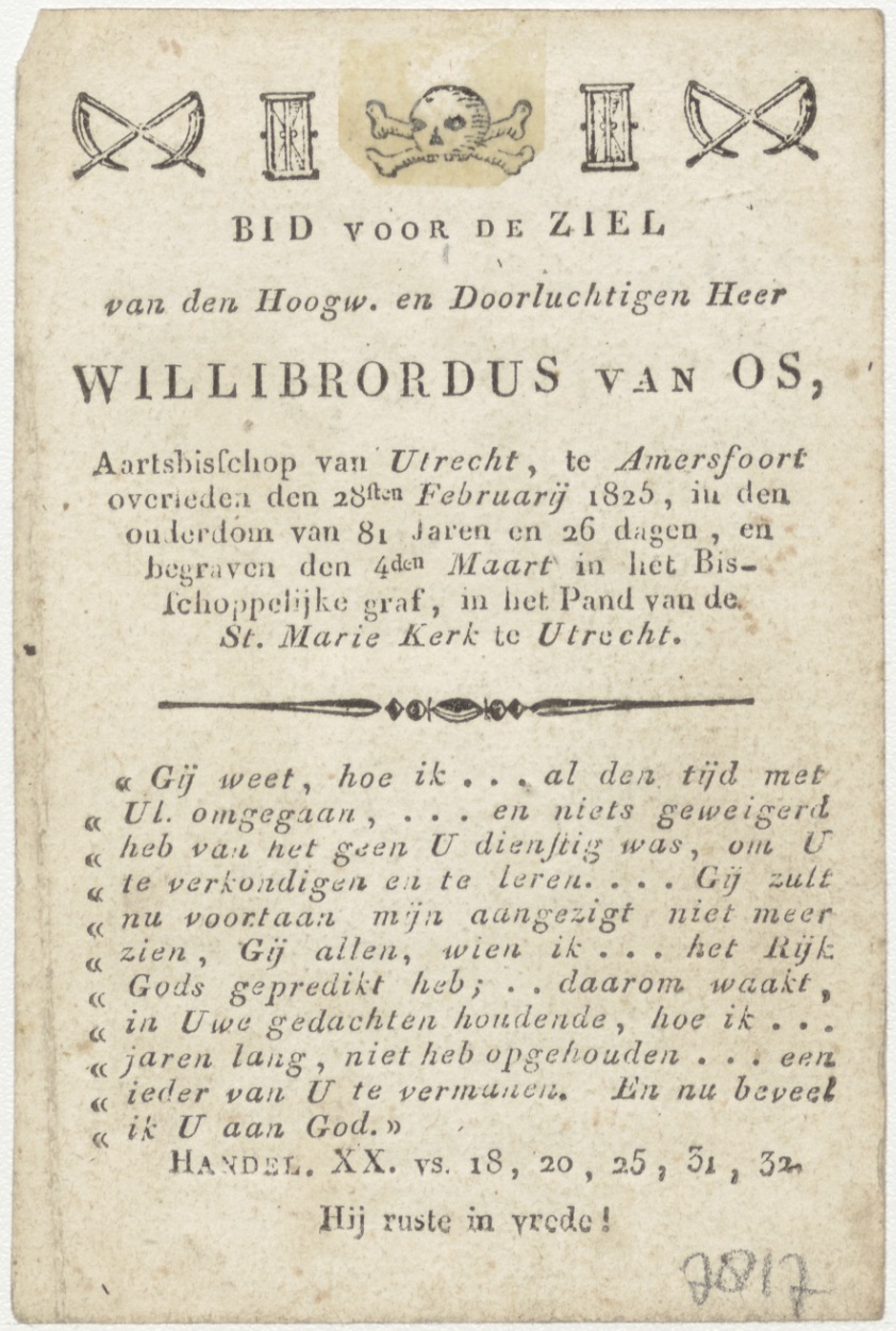 H. Bewaarengel (Frans), kz. Religieus; bid voor ziel Willibrordus van Os (+1825), Amersfoort, aartsbisschop van Utrecht