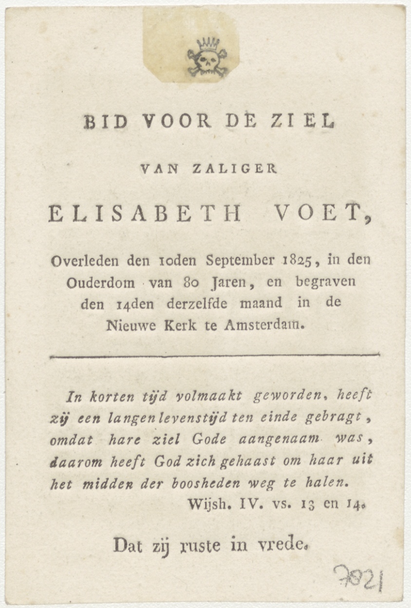H. Dominicus (Frans), kz. Bid voor ziel Voet (+1825) Amsterdam