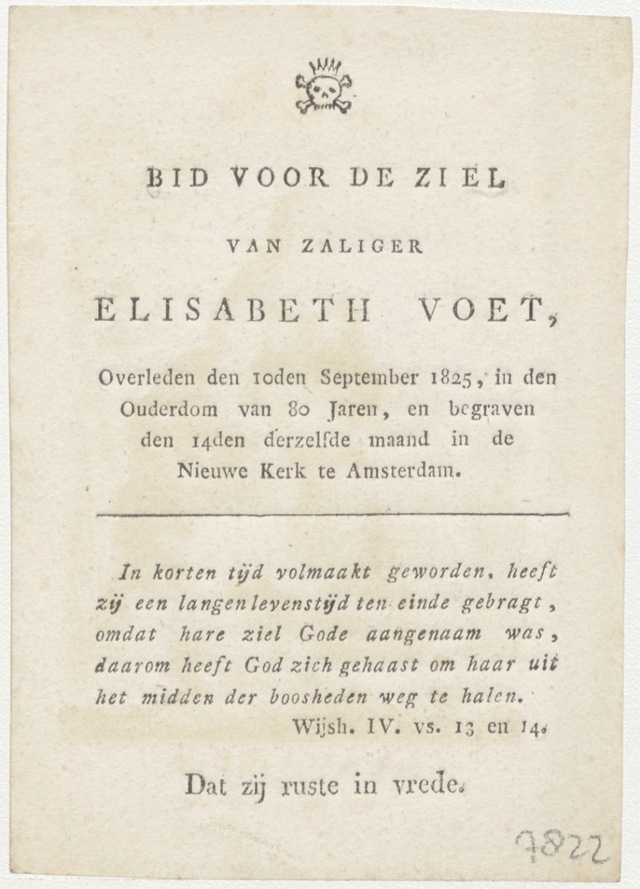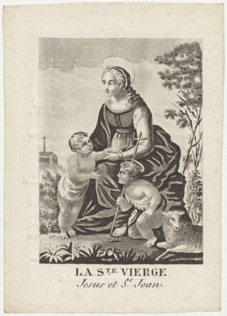 H. Maria met Christuskind en Johannes, kz. Bid voor ziel Voet (+1825) Amsterdam
