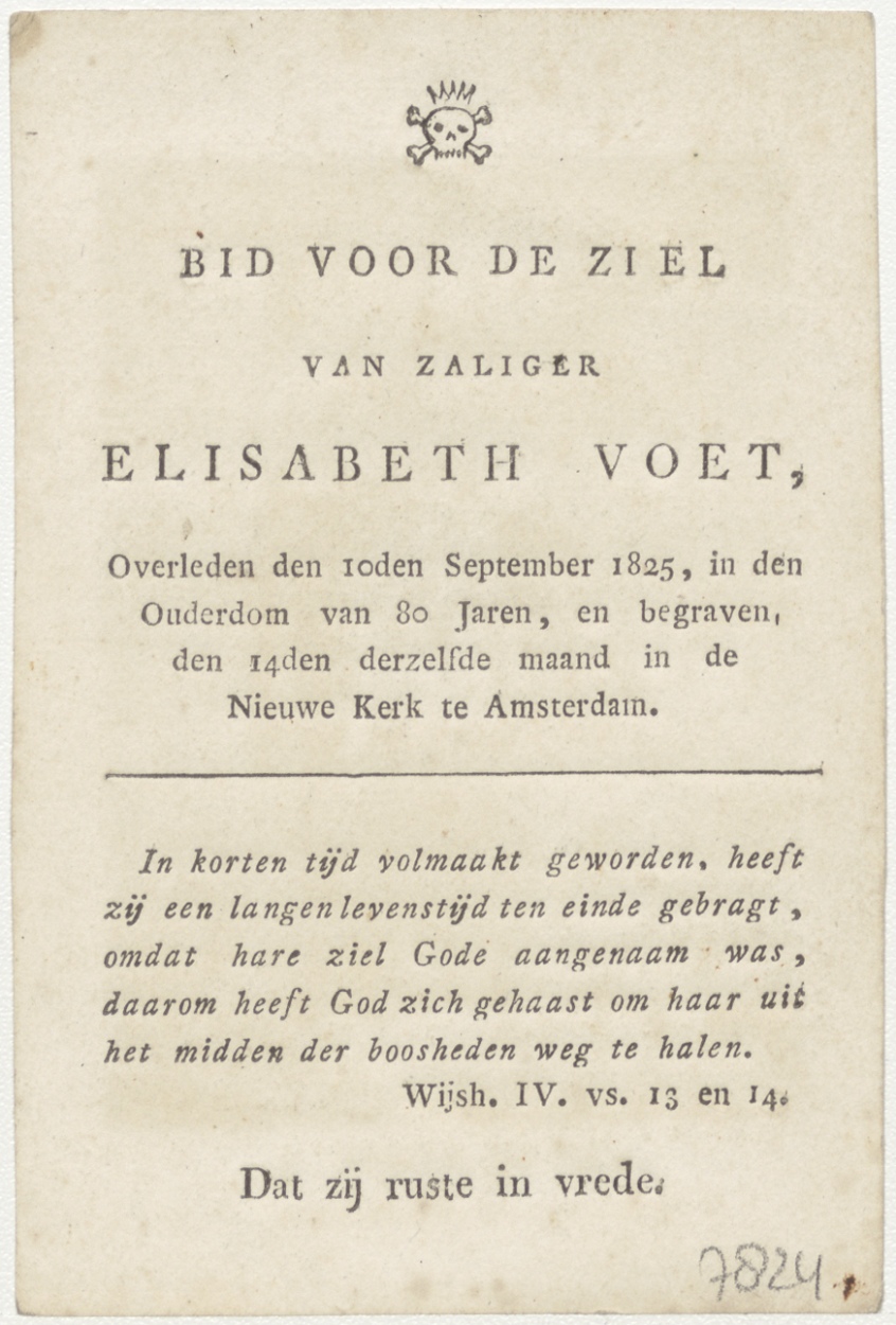 H. Claude (Frans), kz. Bid voor ziel Voet (+1825) Amsterdam