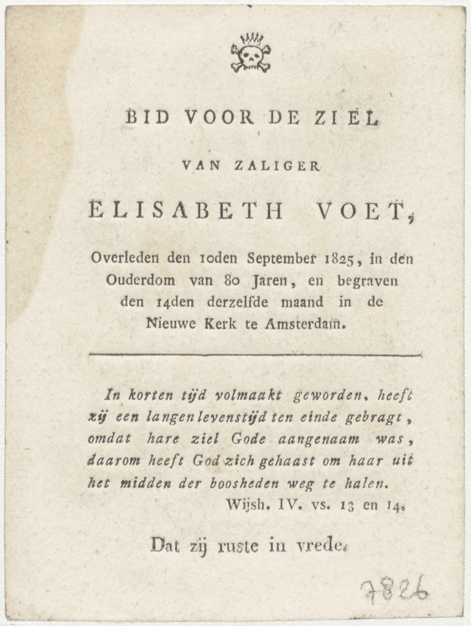 H. Veronique (Frans), kz. Bid voor ziel Voet (+1825) Amsterdam