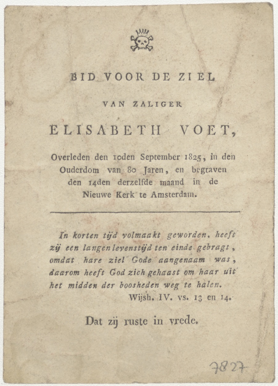 H. Laurentius (Frans), kz. Bid voor ziel Voet (+1825) Amsterdam