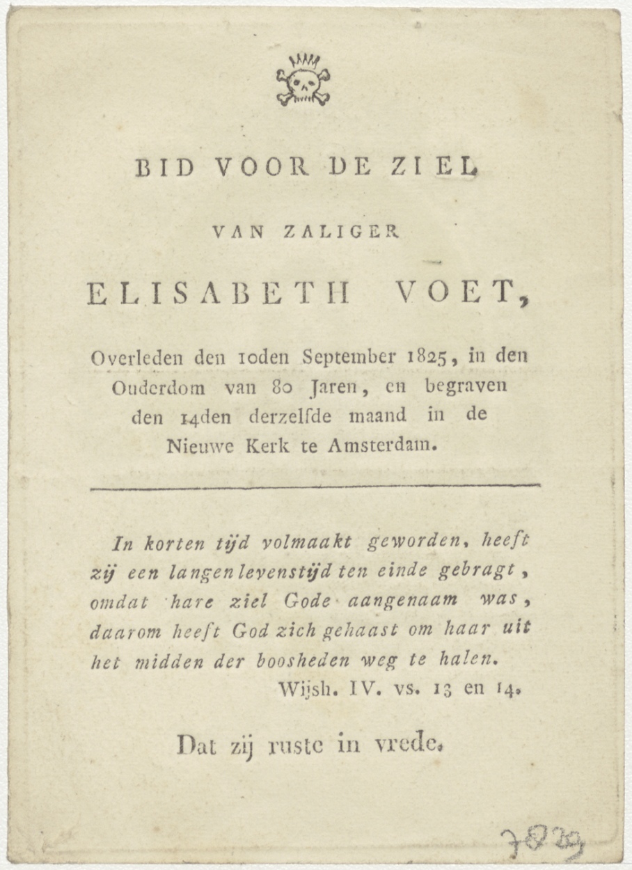 Maria Mater Dei, kz. Bid voor ziel Voet (+1825) Amsterdam