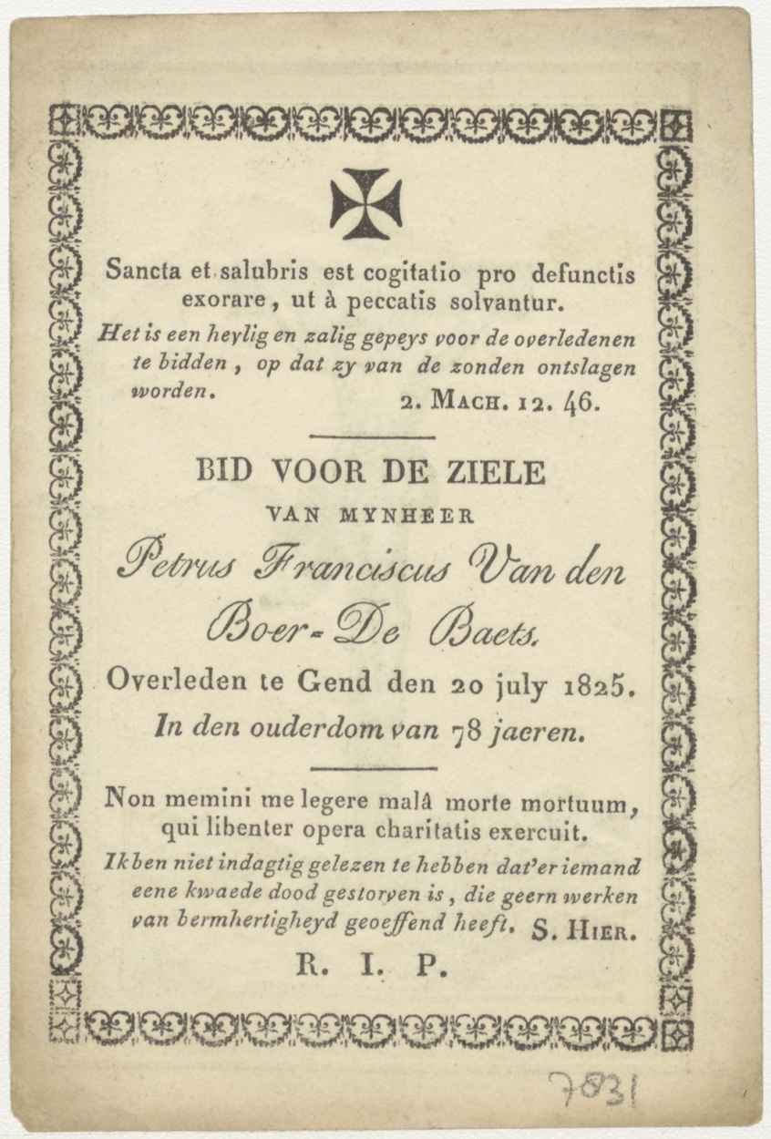 Christus gekruisigd, kz. Bid voor ziel van den Boer-de Baets (+1825) Gend