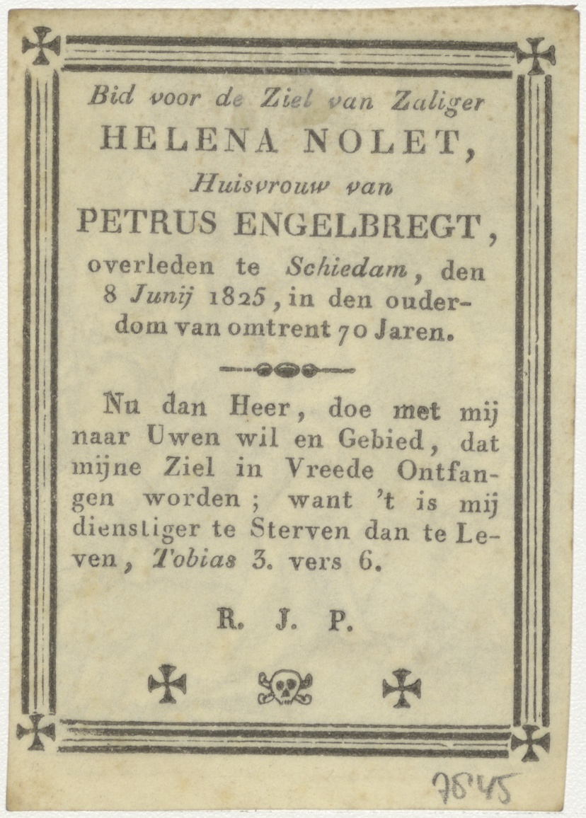 Marteling van Christus, kz. Bid voor ziel Engelbregt (+1825) Schiedam