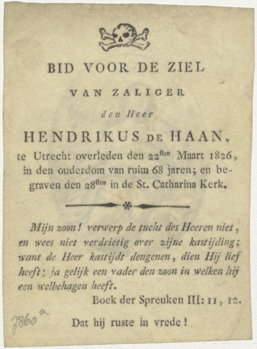 Hemelvaart van Maria, met twee cherubijnenkopjes, kz. Bid voor ziel Hendrikus de Haan (+1826) Utrecht