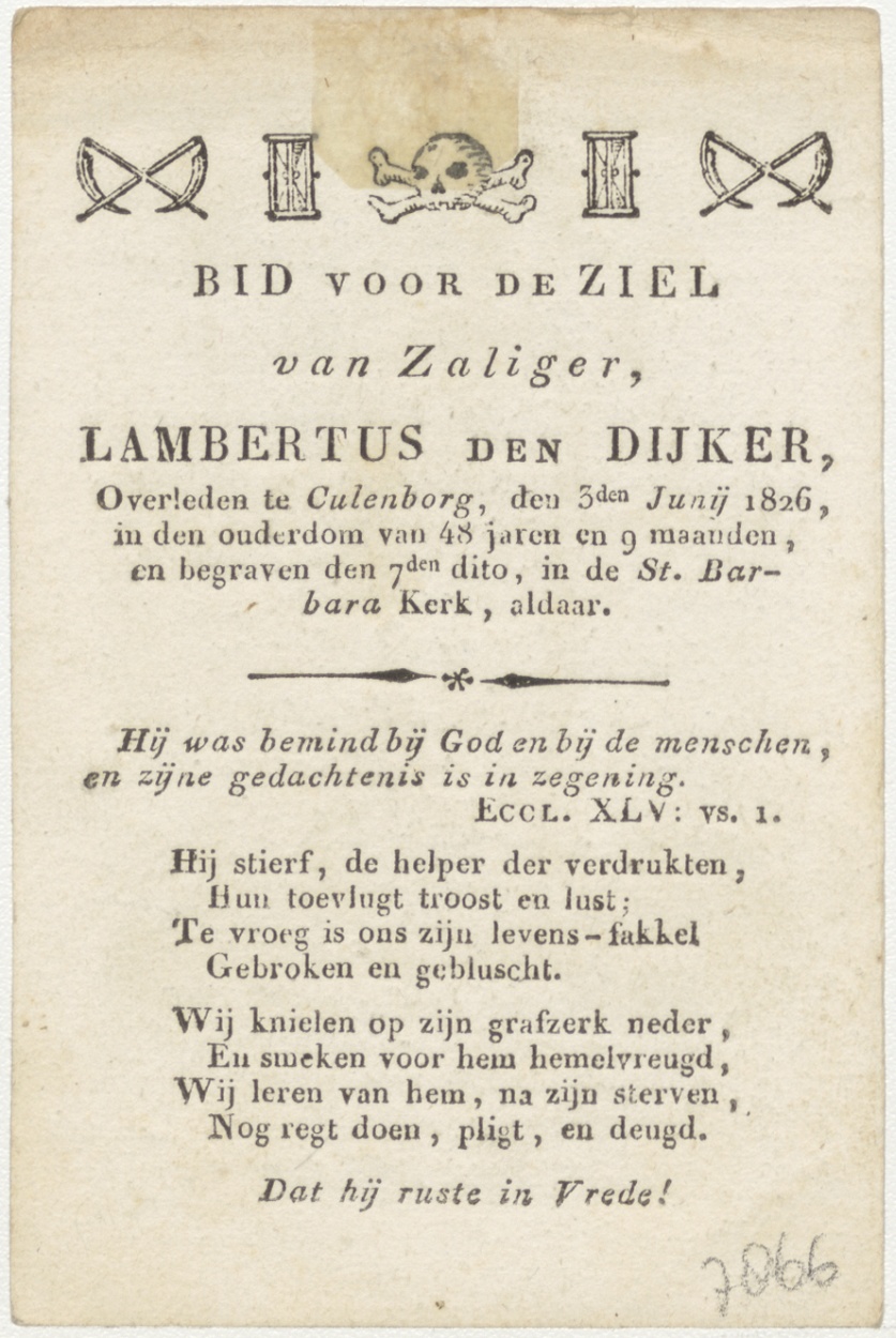 H. Augustinus (Frans), kz. Bid voor ziel Lambertus den Dijker (+1826), Culemborg
