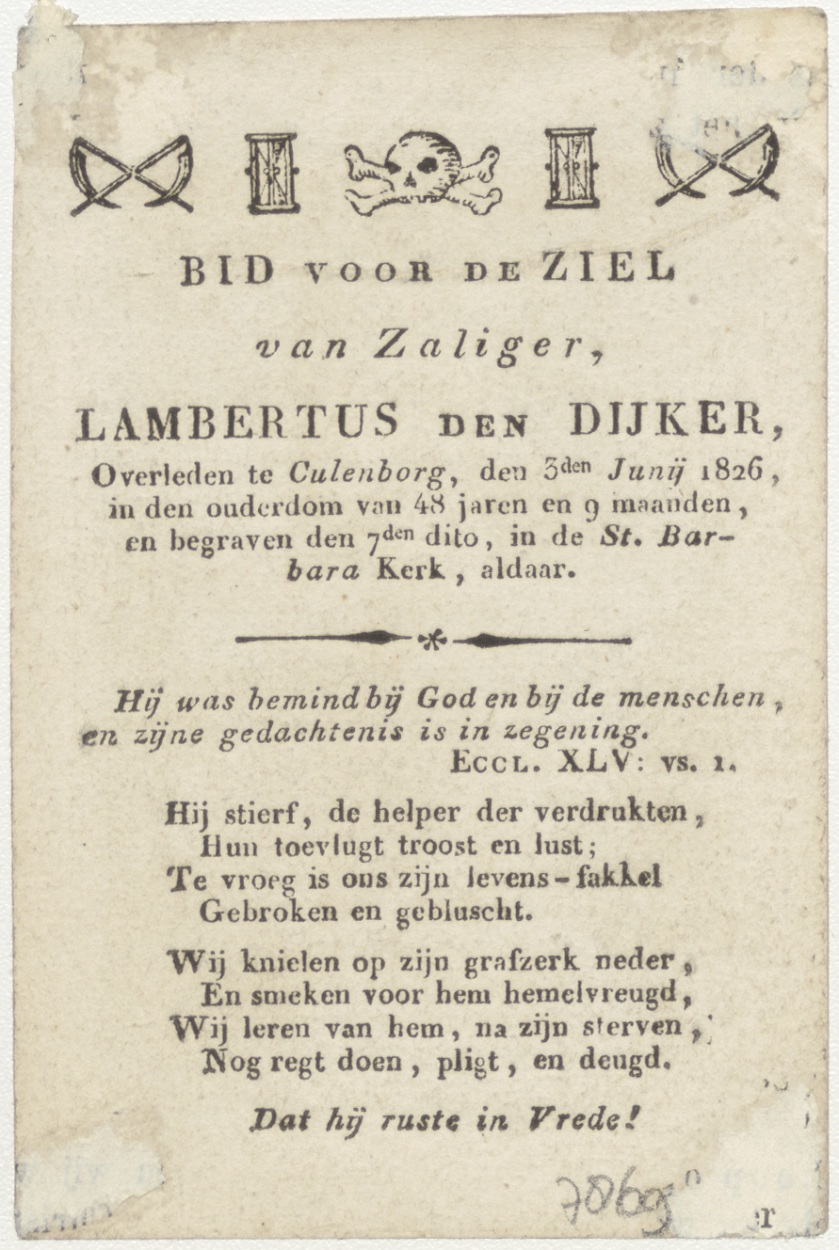 Passie (4e statie) Christus ontmoet zijn moeder (Frans), kz. Bid voor ziel Lambertus den Dijker (+1826), Culemborg