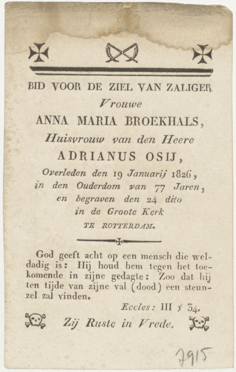 H. Petrus (Frans), kz. Bid voor ziel Anna Maria Broekhals (+1826) Rotterdam, huisvrouw van Adrianus Osij