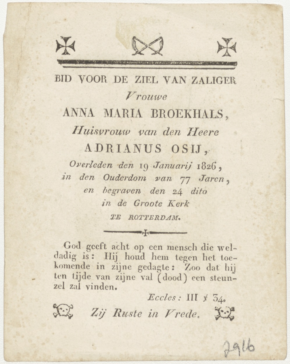H. Petrus, kz. Bid voor ziel Anna Maria Broekhals (+1826) Rotterdam, huisvrouw van Adrianus Osij