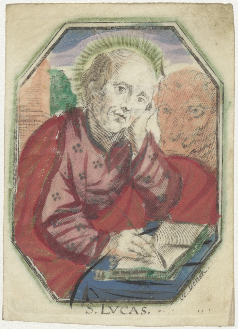 H. Lucas de evangelist, ingekleurd, kz. Verkerk;