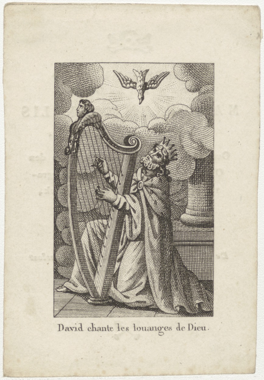 David speelt op de harp (Frans), kz. Bid voor ziel Bouwinkelman (+1826) Amsterdam