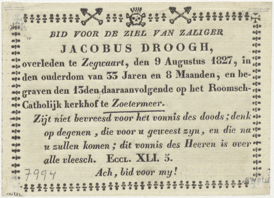 Christus ontvangt het H. Sacrament in de tuin van Getsemané, kz. Bid voor ziel Droogh (+1827) Zegwaart