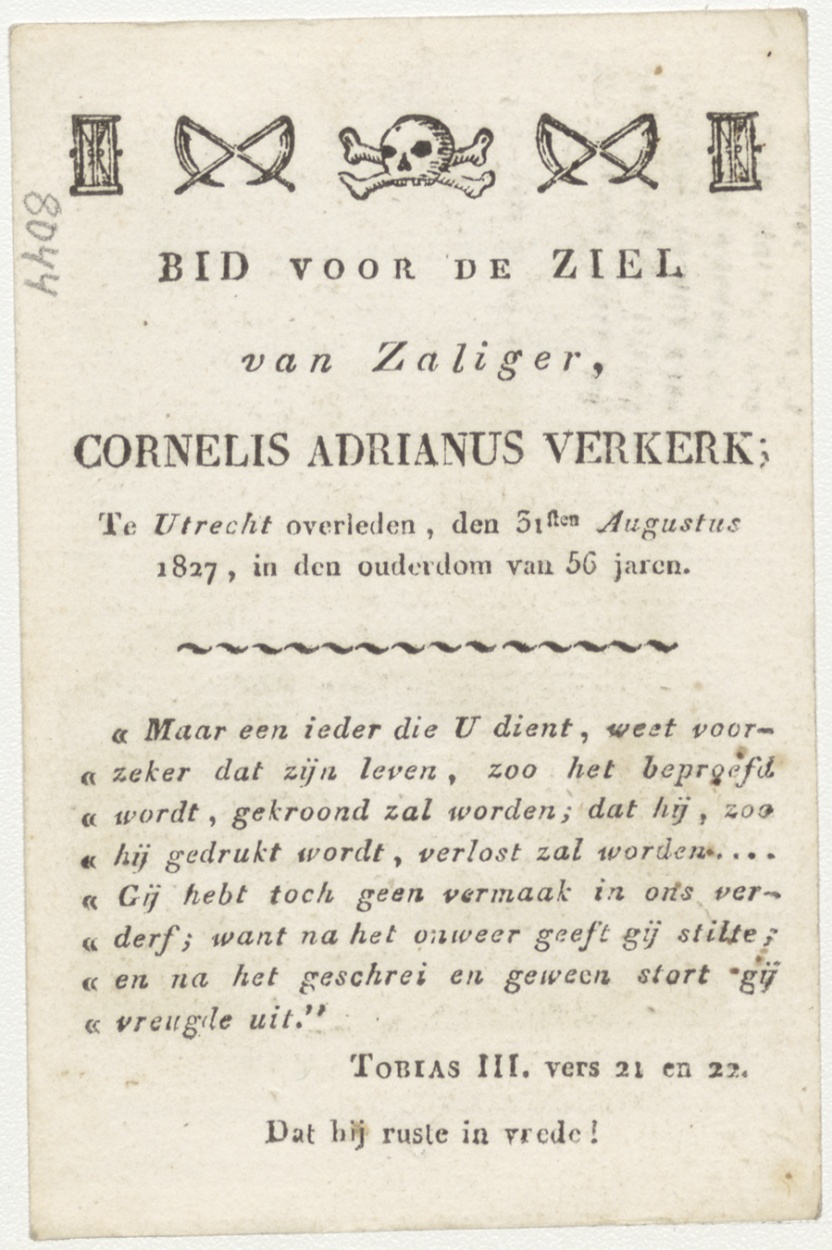 H. Drie-eenheid (Frans), kz. Bid voor ziel Verkerk (+1827) Utrecht