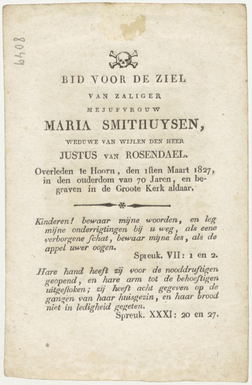 H. Petrus (Frans), kz. Bid voor ziel Smithuysen-Rosendael (+1827) Hoorn