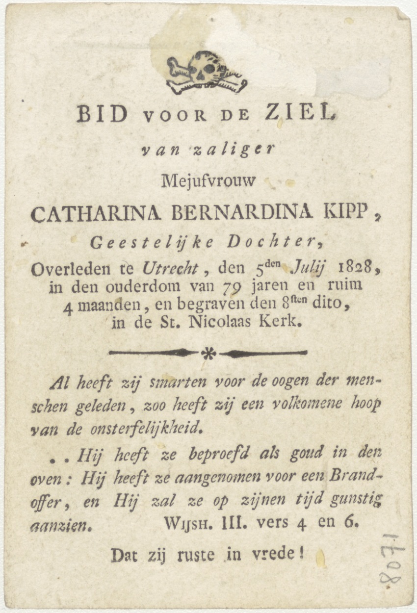 H. Marcus (Frans), kz. Religieus; bid voor ziel Catharina Kipp (+1828) Utrecht