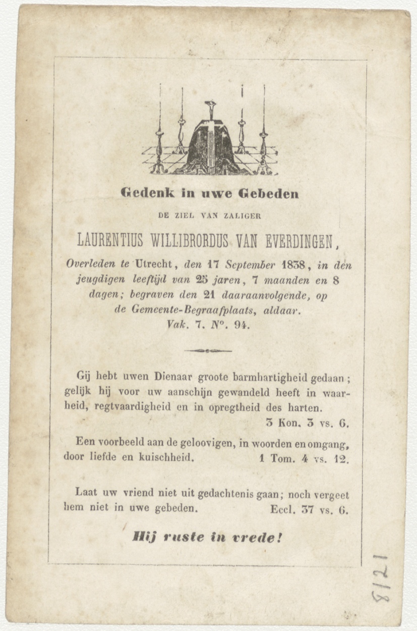 Liefdadigheid van Christus (Frans), kz. Bid voor ziel Van Everdingen (+1838) Utrecht