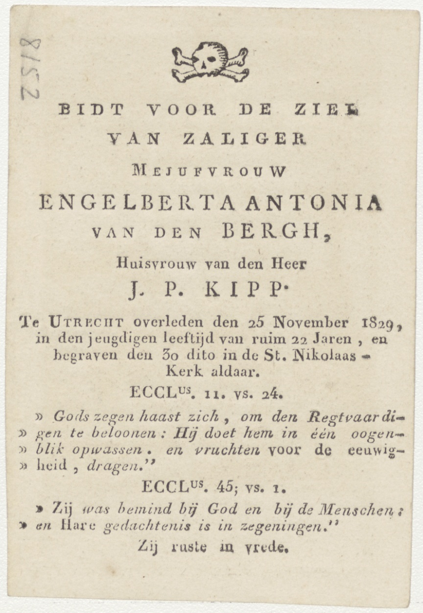 Vlucht naar Egypte (Frans), kz. Bid voor ziel Kipp-van den Bergh (+1829) Utrecht