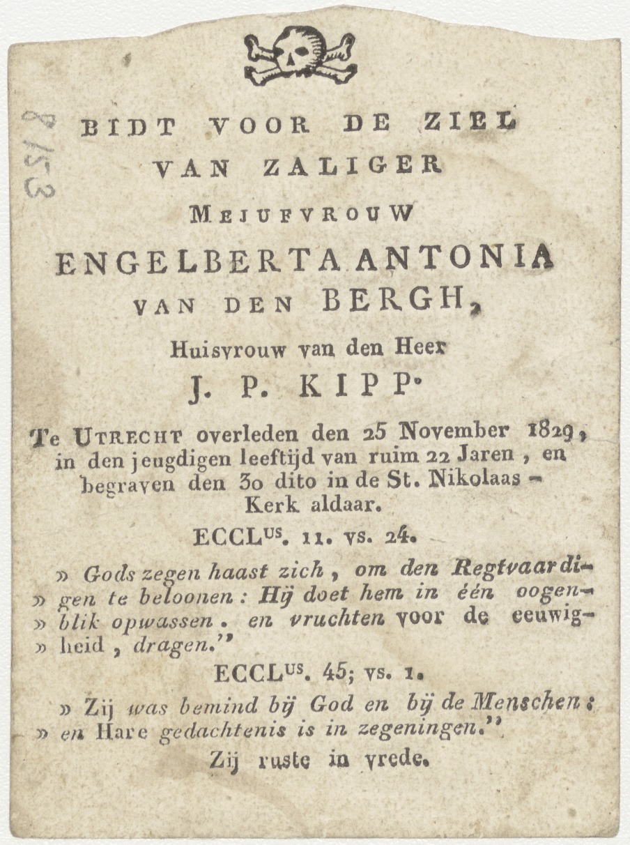Annunciatie (Frans), kz. Bid voor ziel Kipp-van den Bergh (+1829) Utrecht