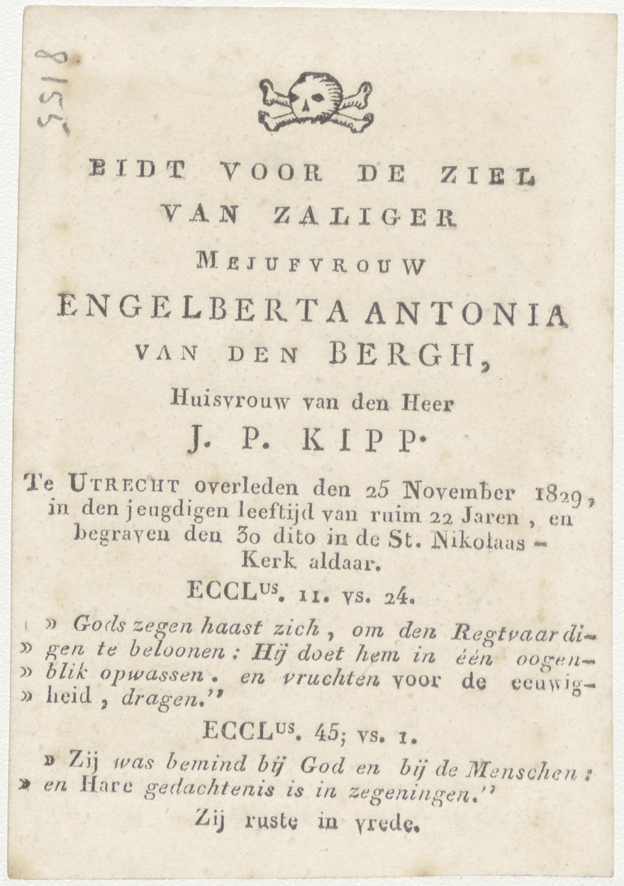 Aanbidding der herders (Frans), kz. Bid voor ziel Van den Bergh-Kipp (+1829) Utrecht