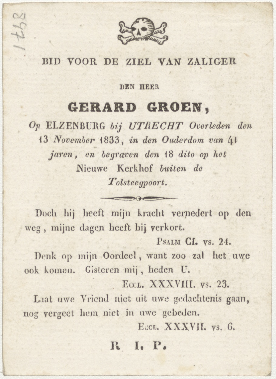 H. Euphrasie (Frans), kz. Bid voor ziel Groen (+1833) Elzenburg bij Utrecht