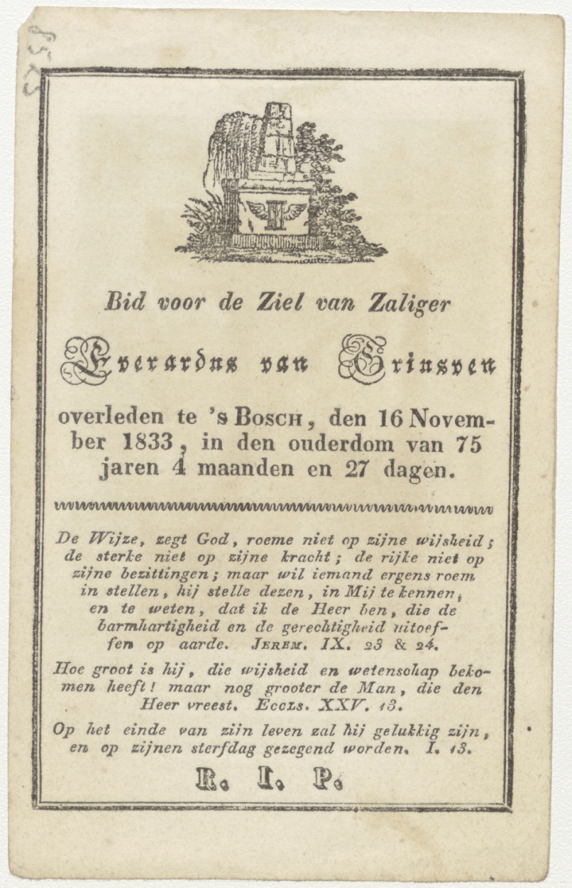 H. Carolus Borromeus (Frans), kz. Bid voor ziel Van Ginsteren (+1833) Den Bosch