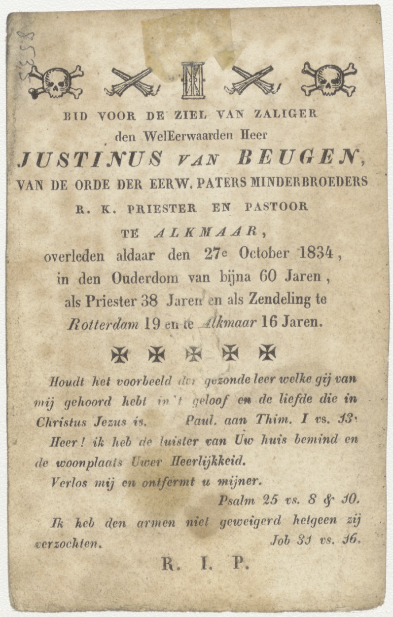 Aanbidding van het H. Sacrament (Frans), kz. Religieus; bid voor ziel Justinus van Beugen (+1834), Alkmaar