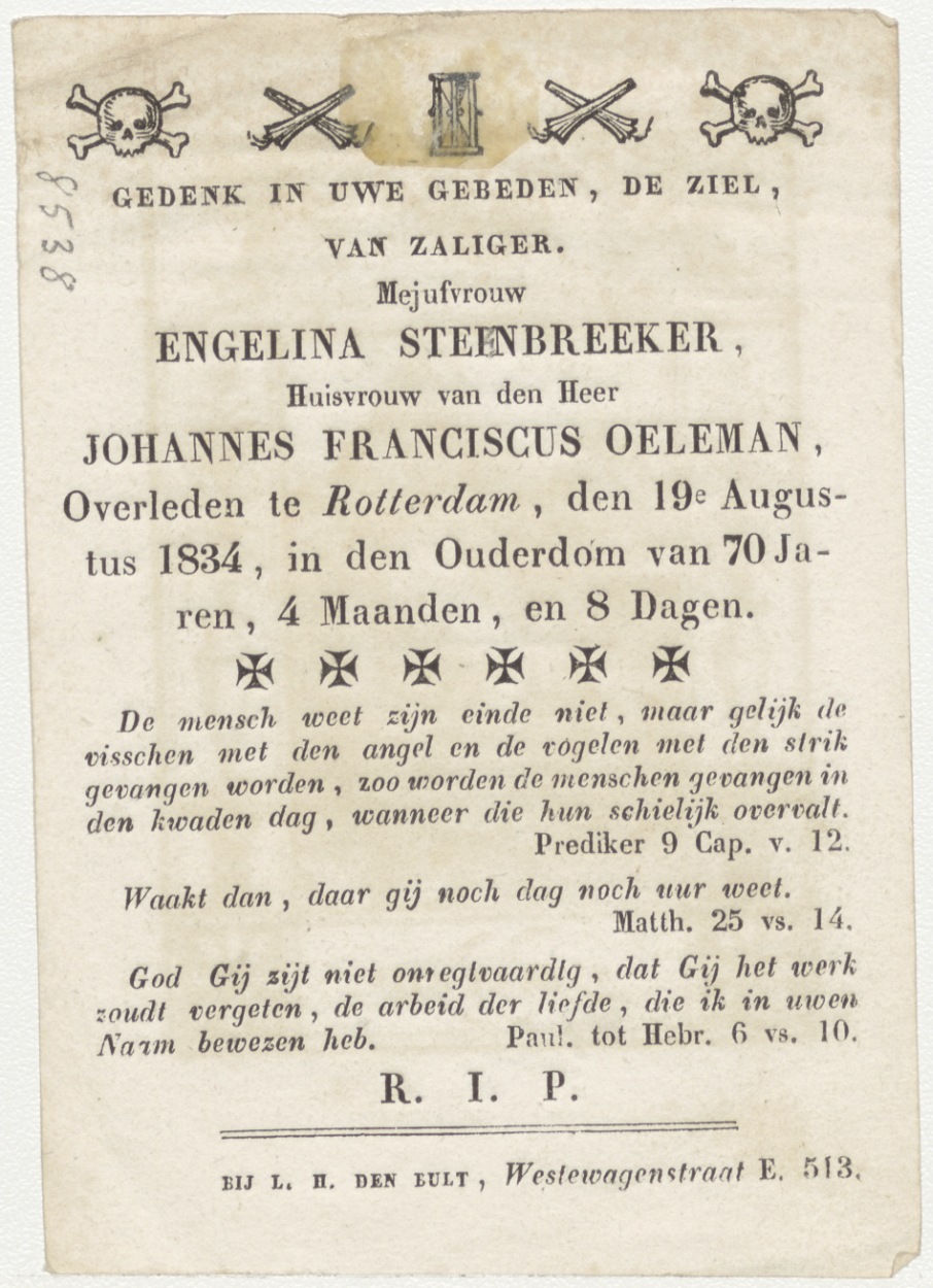 H. Augustinus, kz. Bid voor ziel Oelemans-Steenbreeker (+1834) Rotterdam
