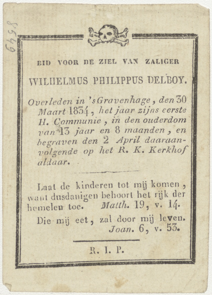 H. Radboud, kz. Bid voor ziel Delboy (+1834) 's-Gravenhage