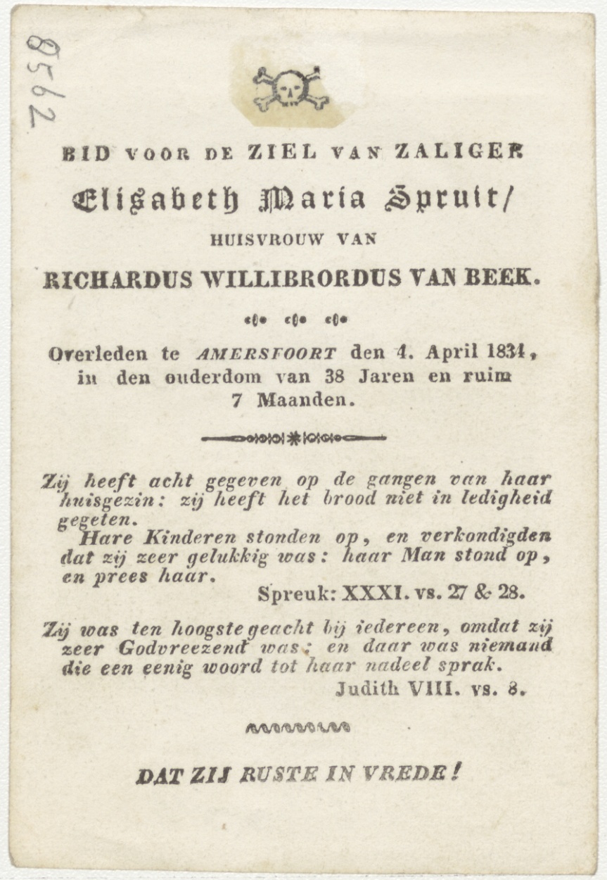 H. Elisabeth (Frans), kz. Bid voor ziel Spruit-Van Beek (+1834) Amersfoort