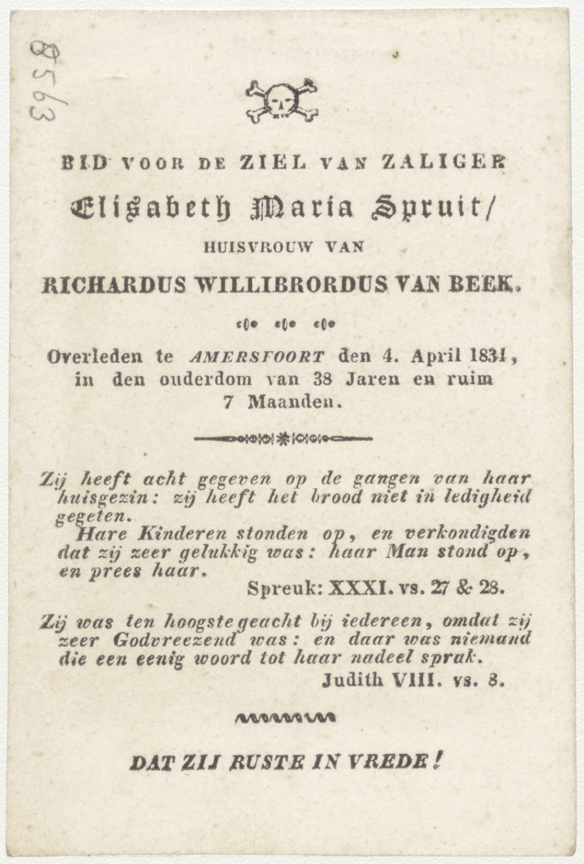 H. Maria van Egypte (Frans), kz. Bid voor ziel Spruit-Van Beek (+1834) Amersfoort