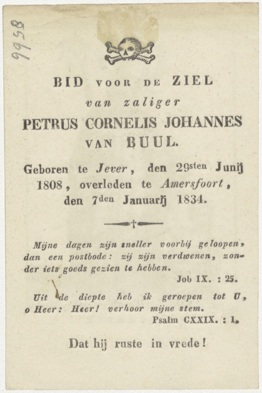 H. Gregorius van Utrecht, aartsbisschop, kz. Bid voor ziel Van Buul (+1834), Amersfoort