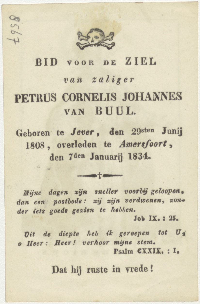 H. Fredericus, kz. Bid voor ziel Van Buul (+1834) Jever