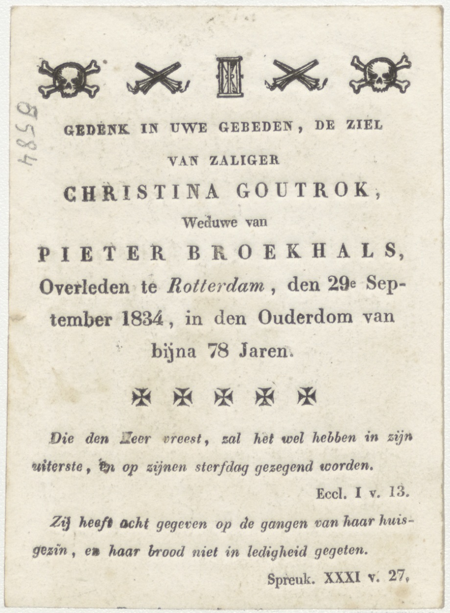 H. Charles Borromeus (Frans), kz. Bid voor ziel Goutrok-Broekhals (+1834) Rotterdam