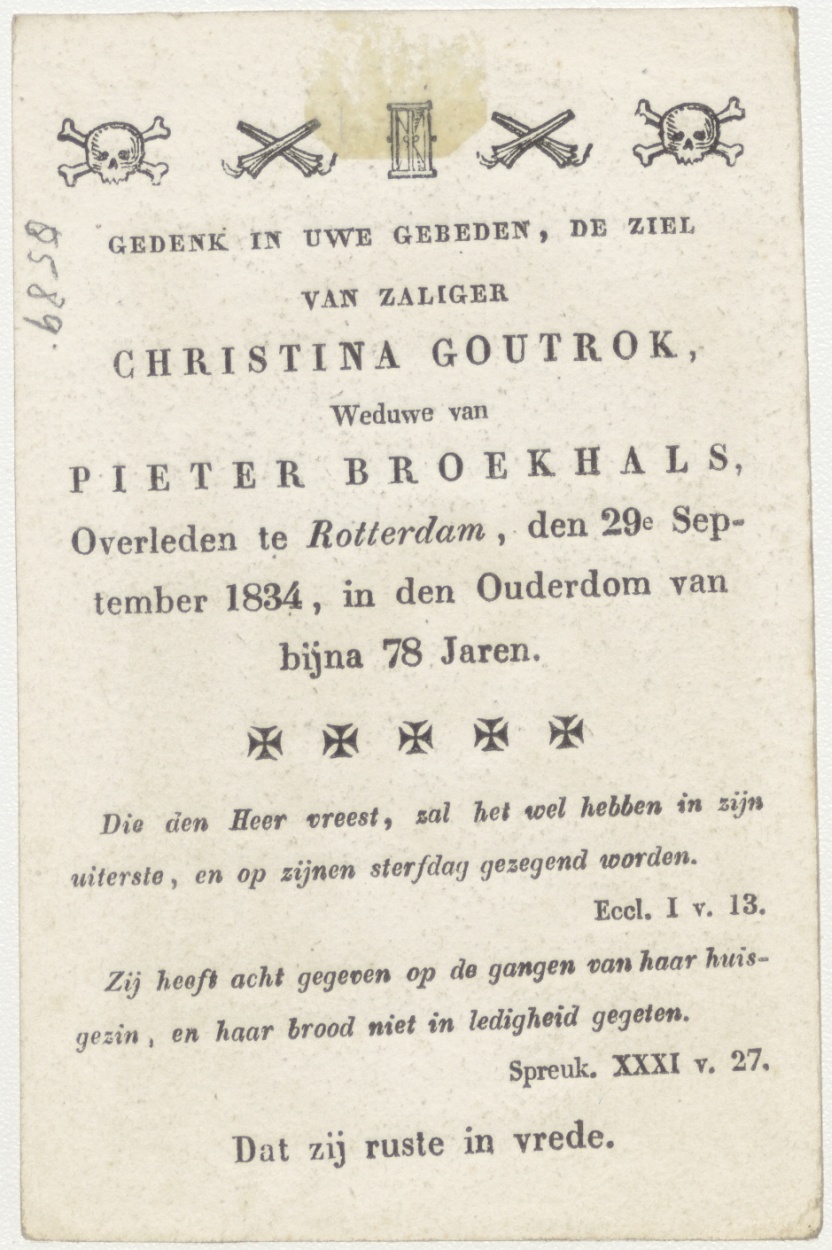 H. Michael (Frans), kz. Bid voor ziel Christina Goutrok (+1834) Rotterdam, weduwe van Pieter Broekhals