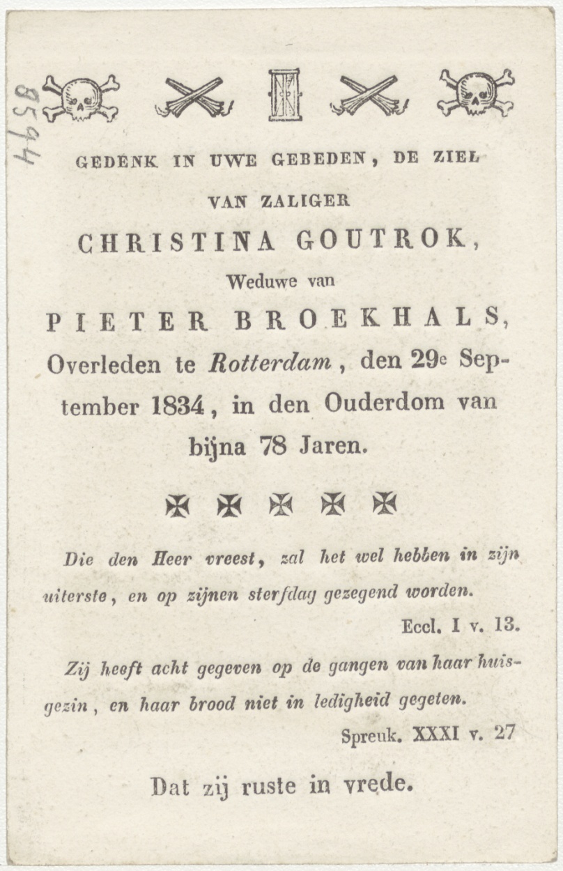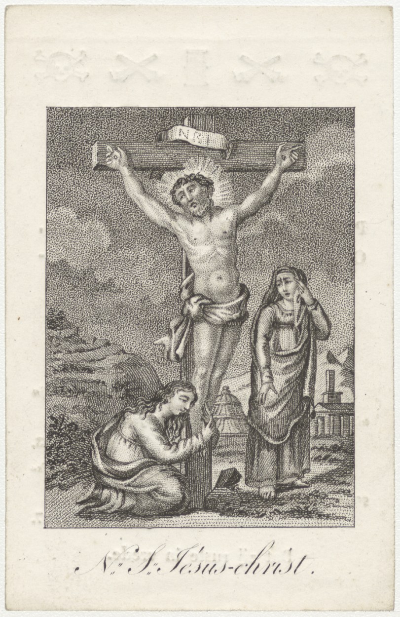 H. Jezus Christus met Maria en Maria Magdalena (Frans), kz. Bid voor ziel Christina Goutrok (+1834) Rotterdam, weduwe van Pieter Broekhals