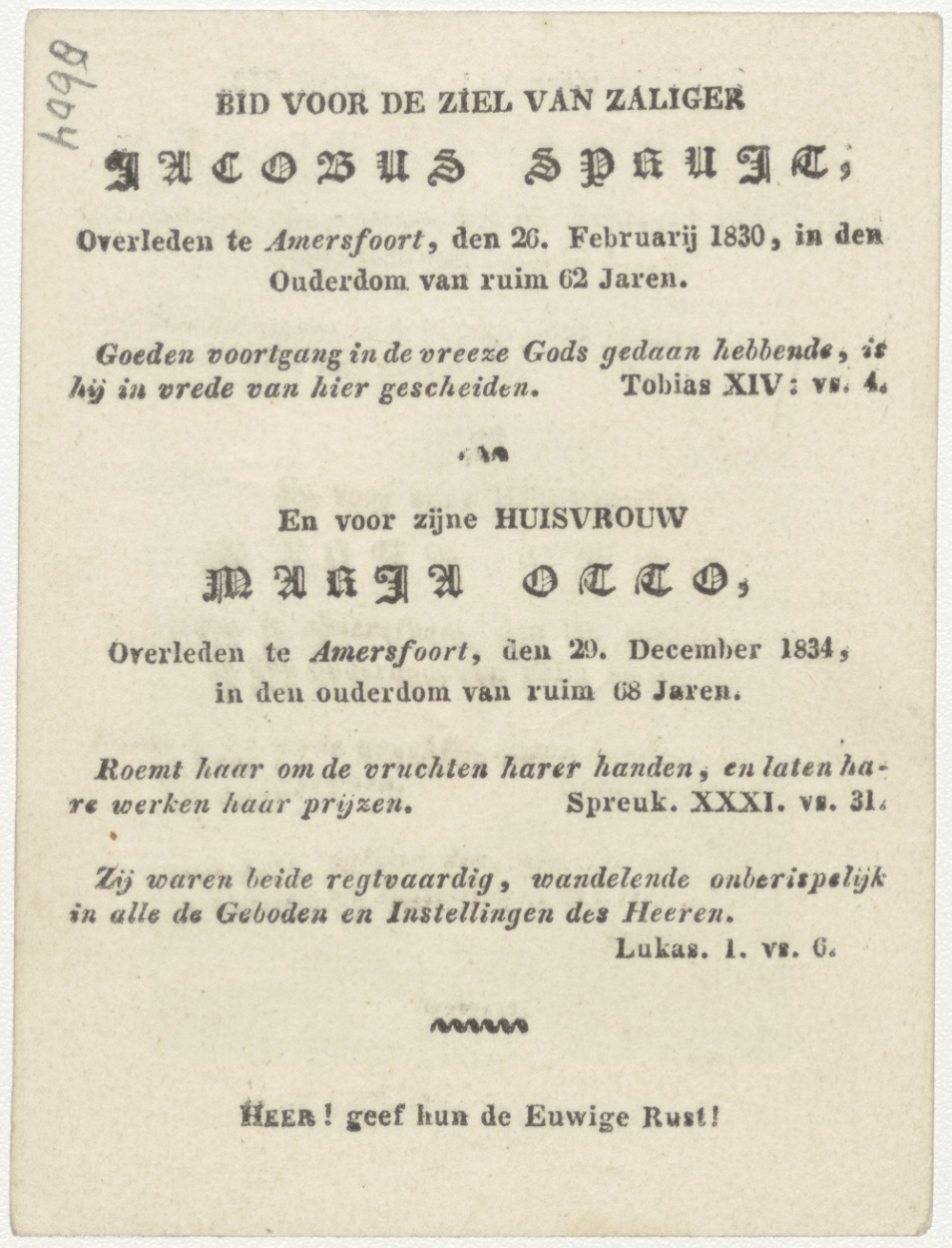 H. Joannes de Doper, kz. Bid voor ziel Jacobus Spruit (+1830) en zijn huisvrouw Maria Otto (+1834), Amersfoort