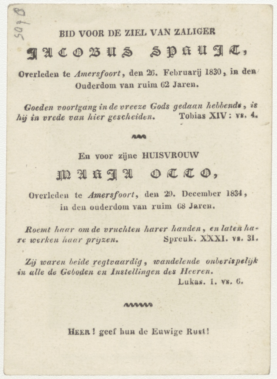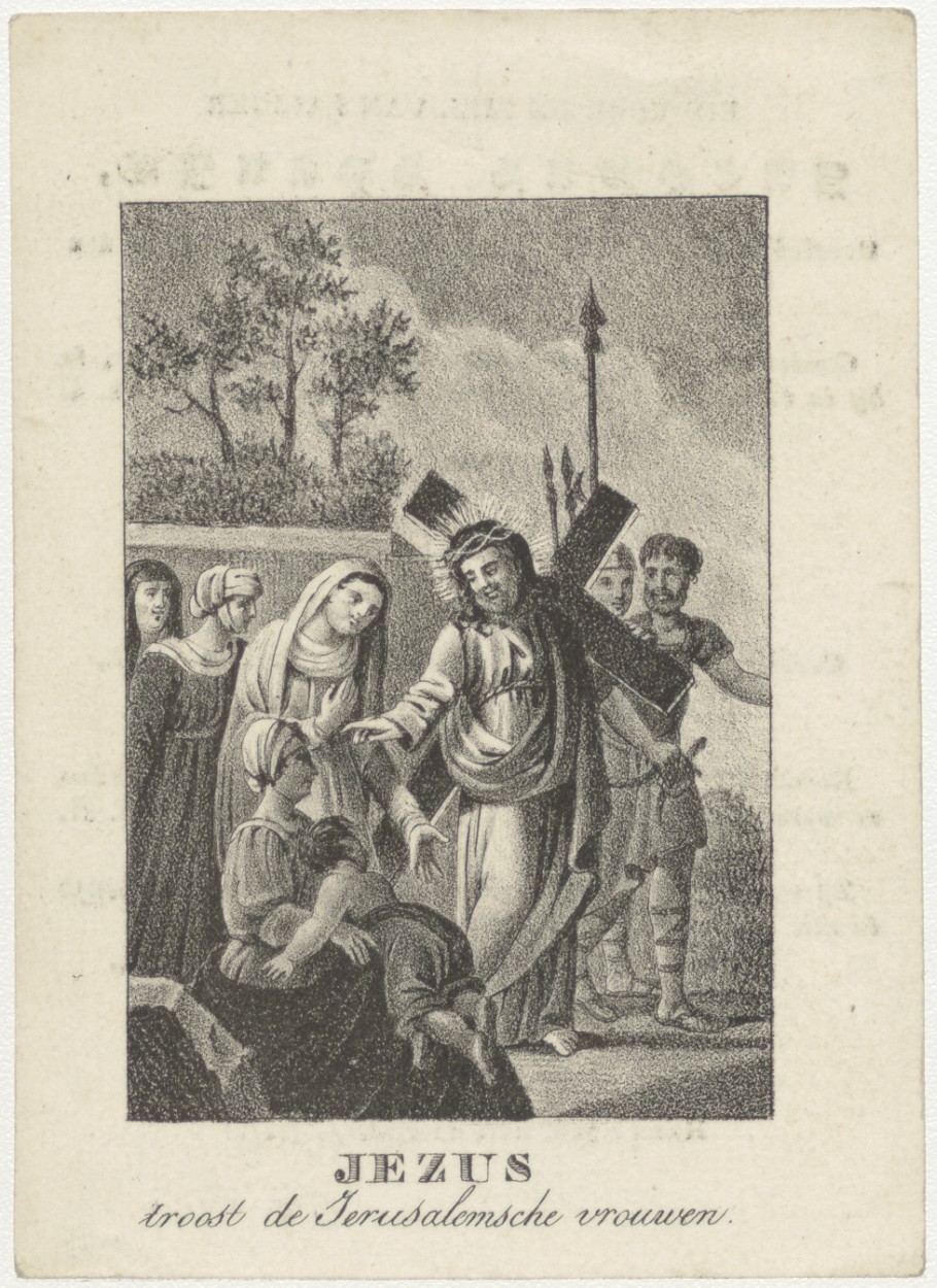 Christus troost de Jeruzalemse vrouwen, kz. Bid voor ziel Jacobus Spruit (+1830) en zijn huisvrouw Maria Otto (+1834), Amersfoort