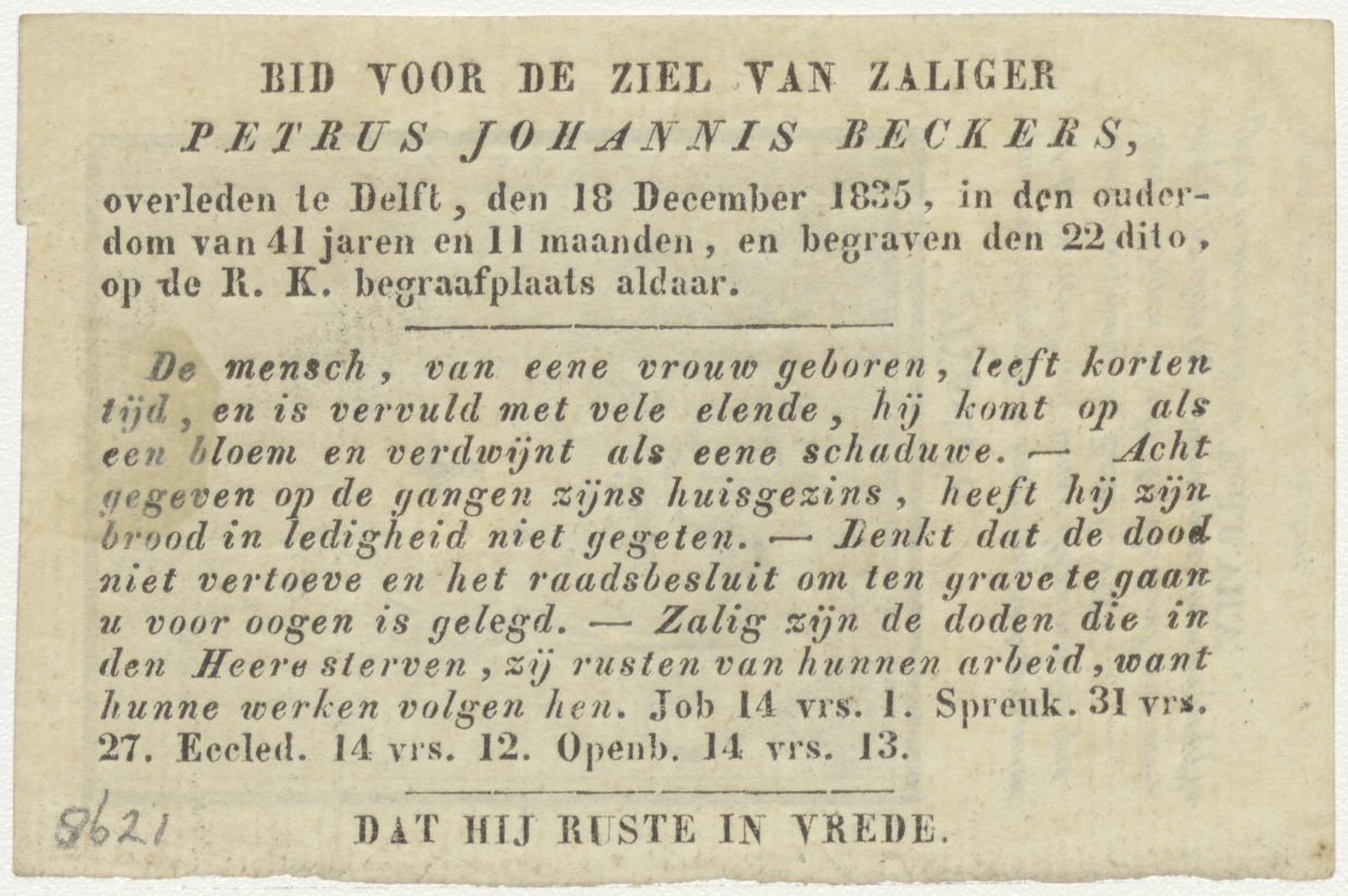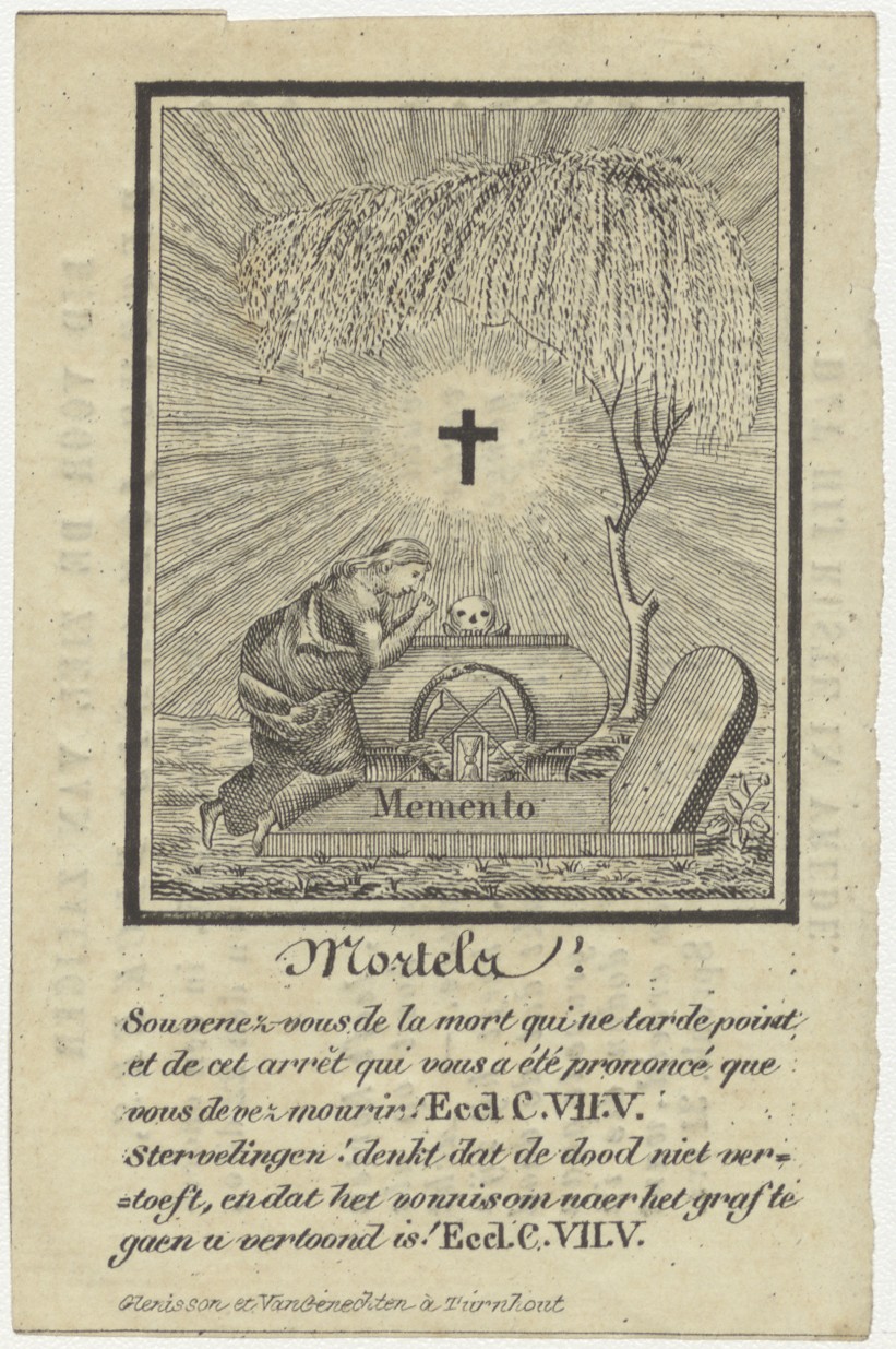 Vrouw bij sarcofaag, sterveling, kz. Bid voor ziel Beckers (+1835) Delft