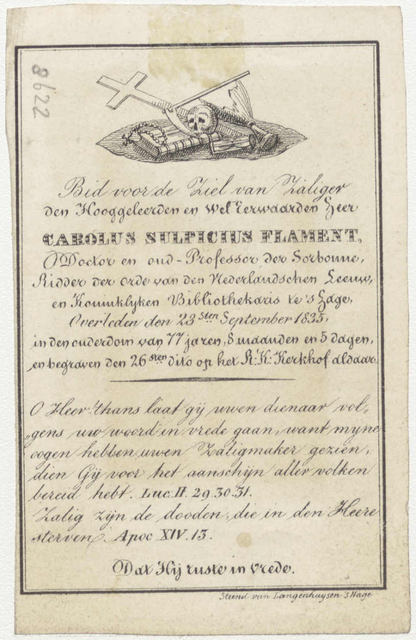 H. Apollonia van Alexandrië (Frans), kz. Bid voor ziel Flament (+1835) 's-Gravenhage