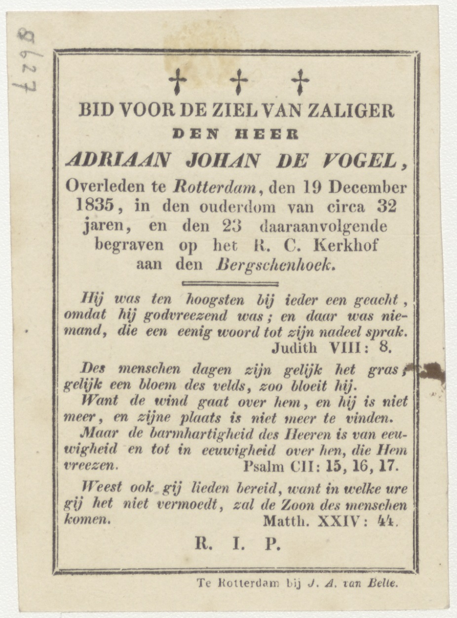 H. Familie, kz. Bid voor ziel Vogel (+1835) Rotterdam
