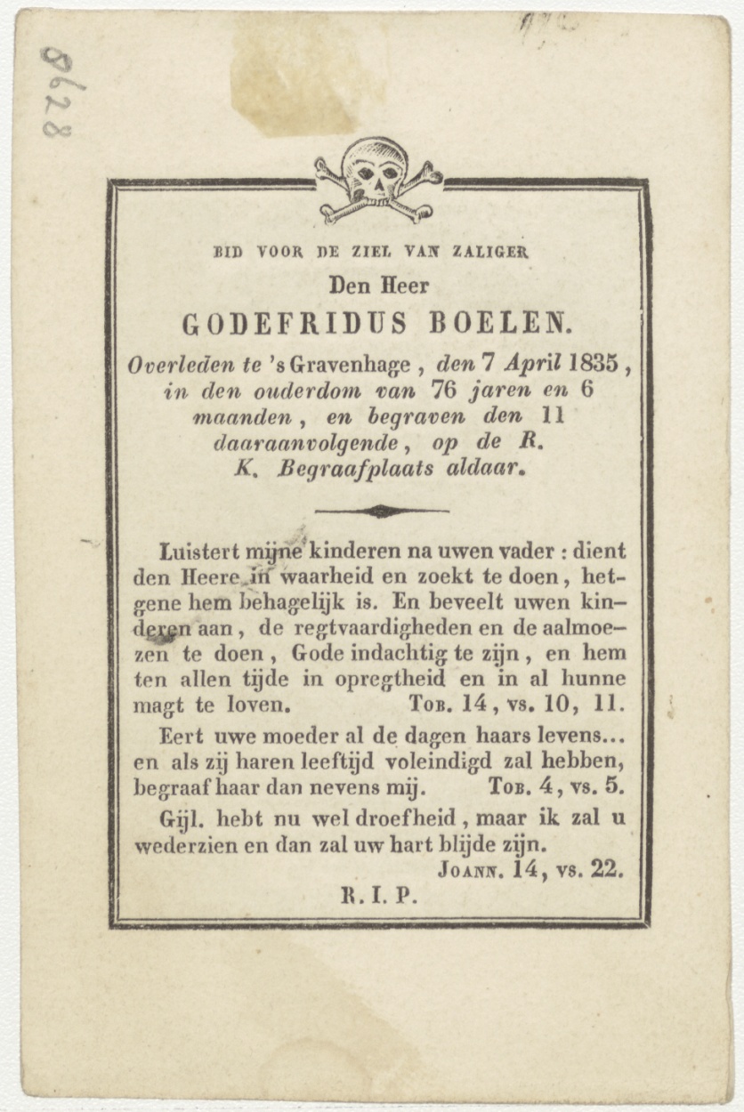 Geest Gods versterke U, kz. Bid voor ziel Boelen (+1835) 's-Gravenhage