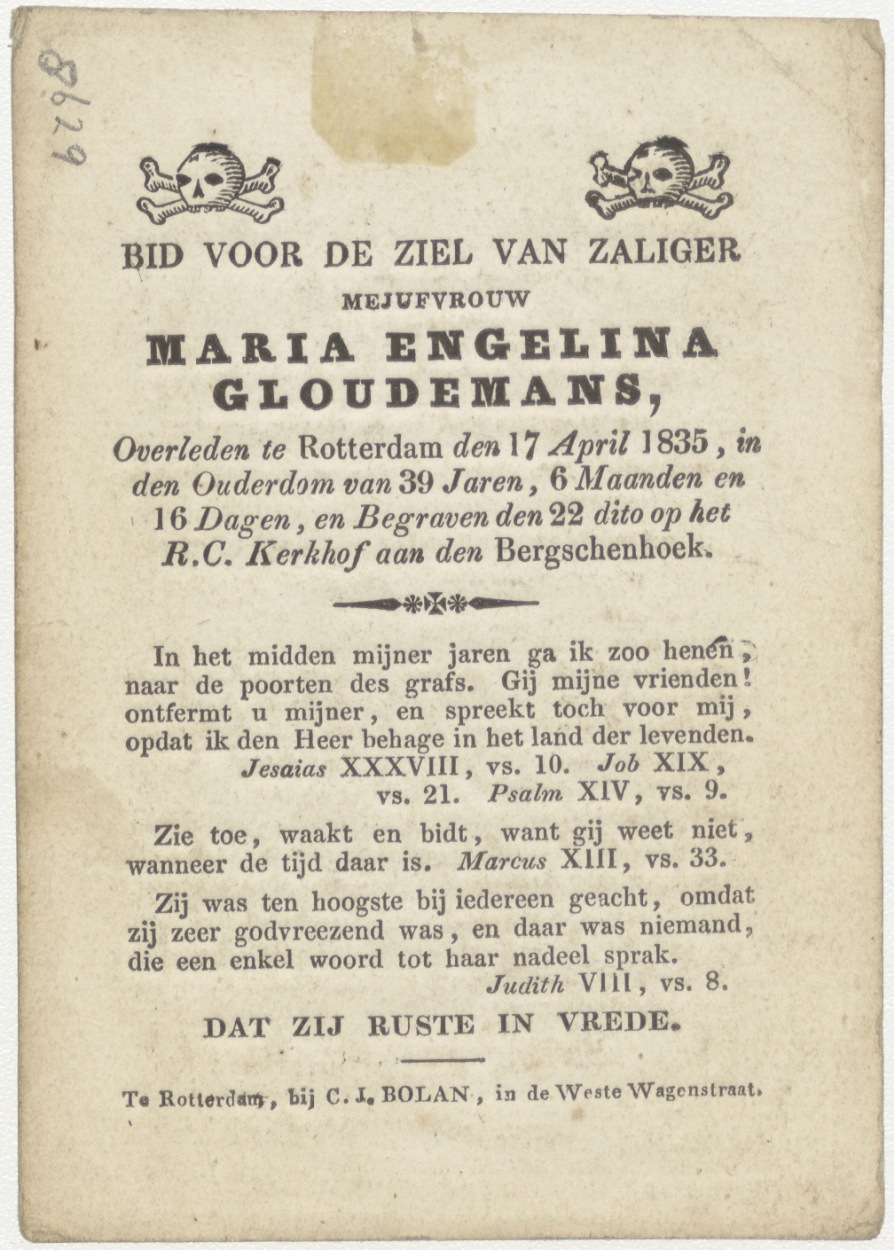 Vlucht naar Egypte (Frans), kz. Bid voor ziel Gloudemans (+1835) Rotterdam