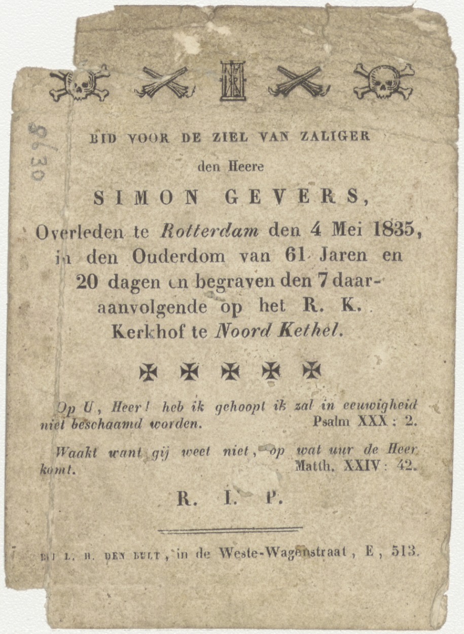 Evangelie (Frans), kz. Bid voor ziel Gevers (+1835) Rotterdam
