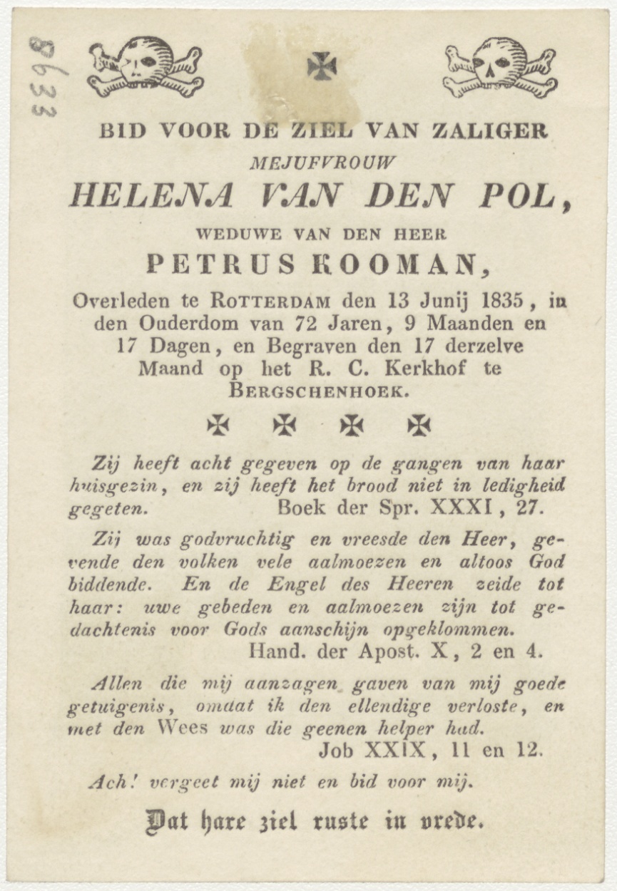 Kruis, in dit teeken zult gij overwinnen, kz. Bid voor ziel Van den Pol-Kooman (+1835) Rotterdam