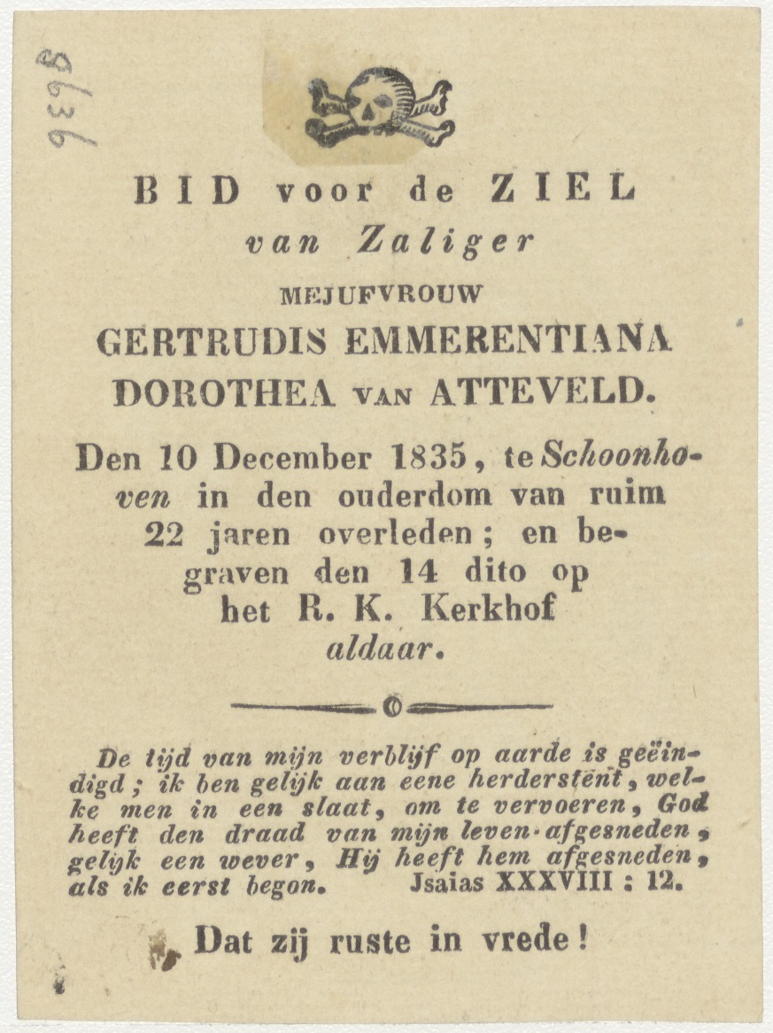 H. Mamilianus, kz. Bid voor ziel Van Alteveld (+1835) Schoonhoven