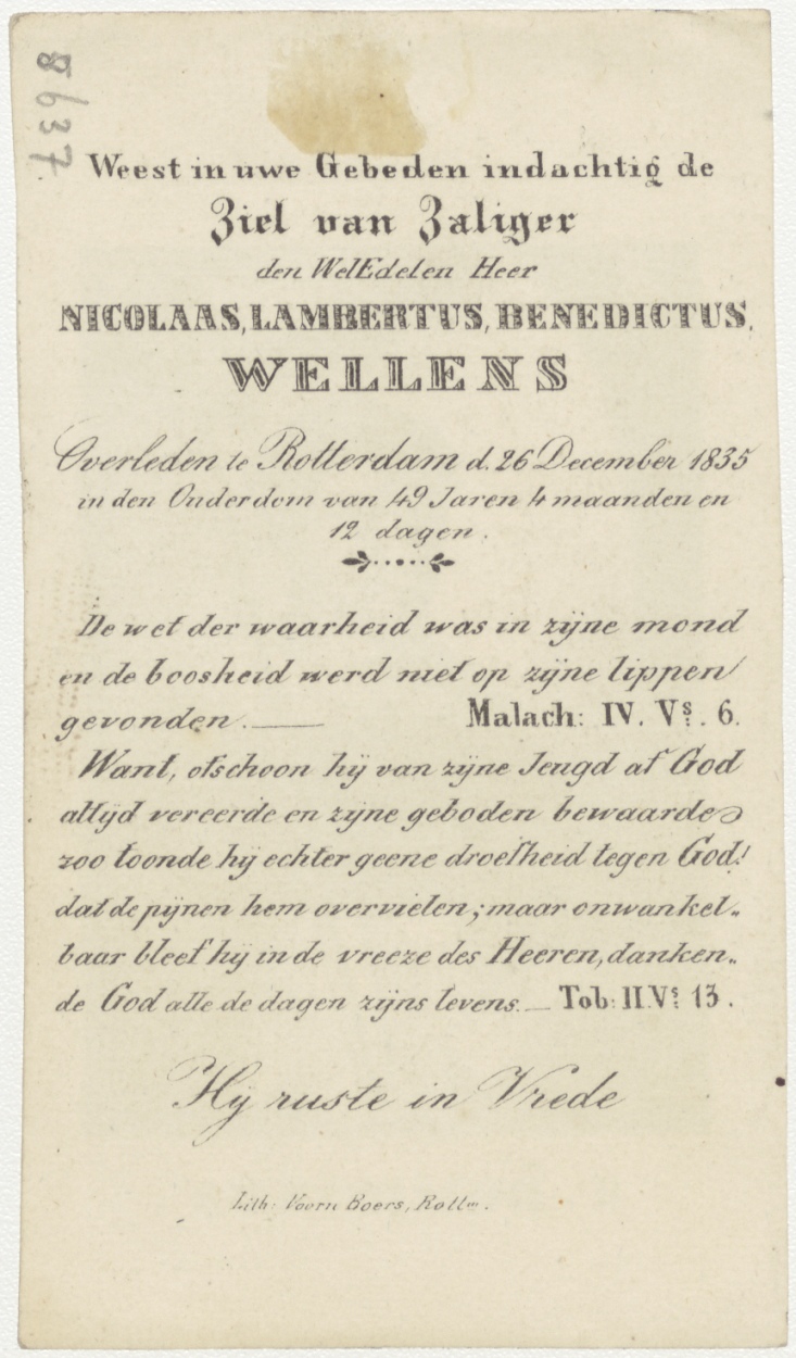 H. Dominicus, kz. Bid voor ziel Wellens (+1835) Rotterdam