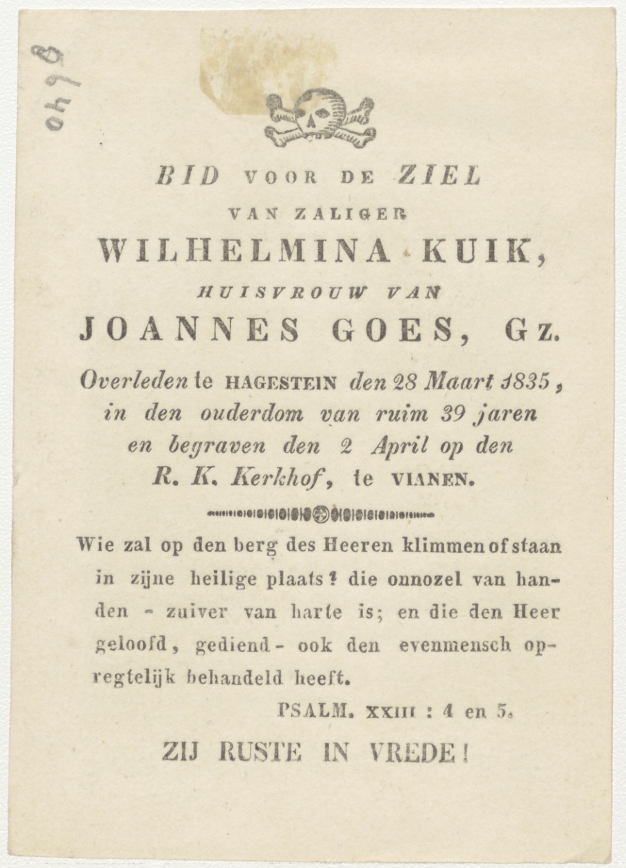 Maria met haar zeven Weeën, kz. Bid voor ziel Kuik-Goes (+1835) Hagestein